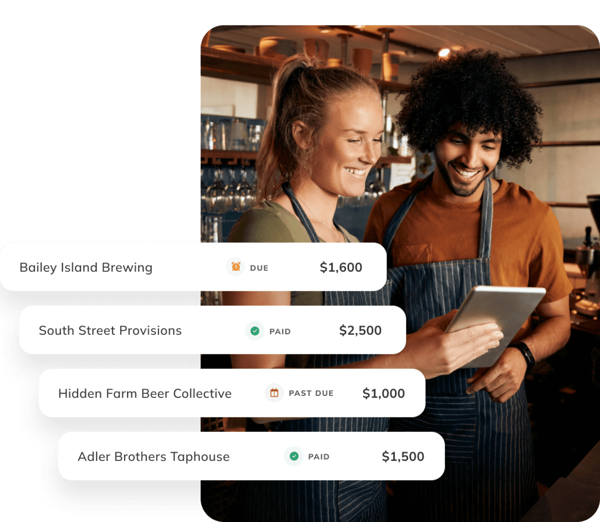 Stay up to date on incoming, coming due and past due customer payments.