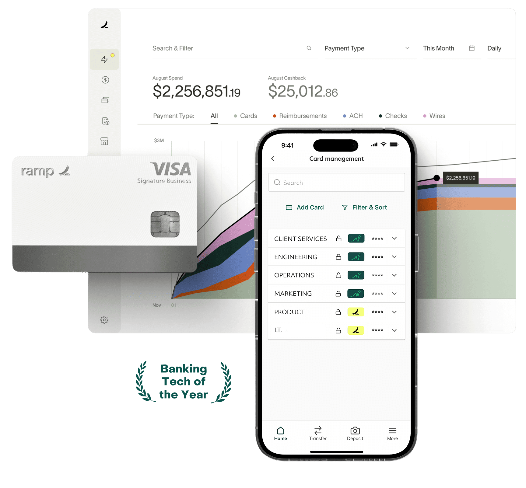 Enjoy up to 20x higher limits and view the status of your Ramp cards right from our online and mobile banking platform.